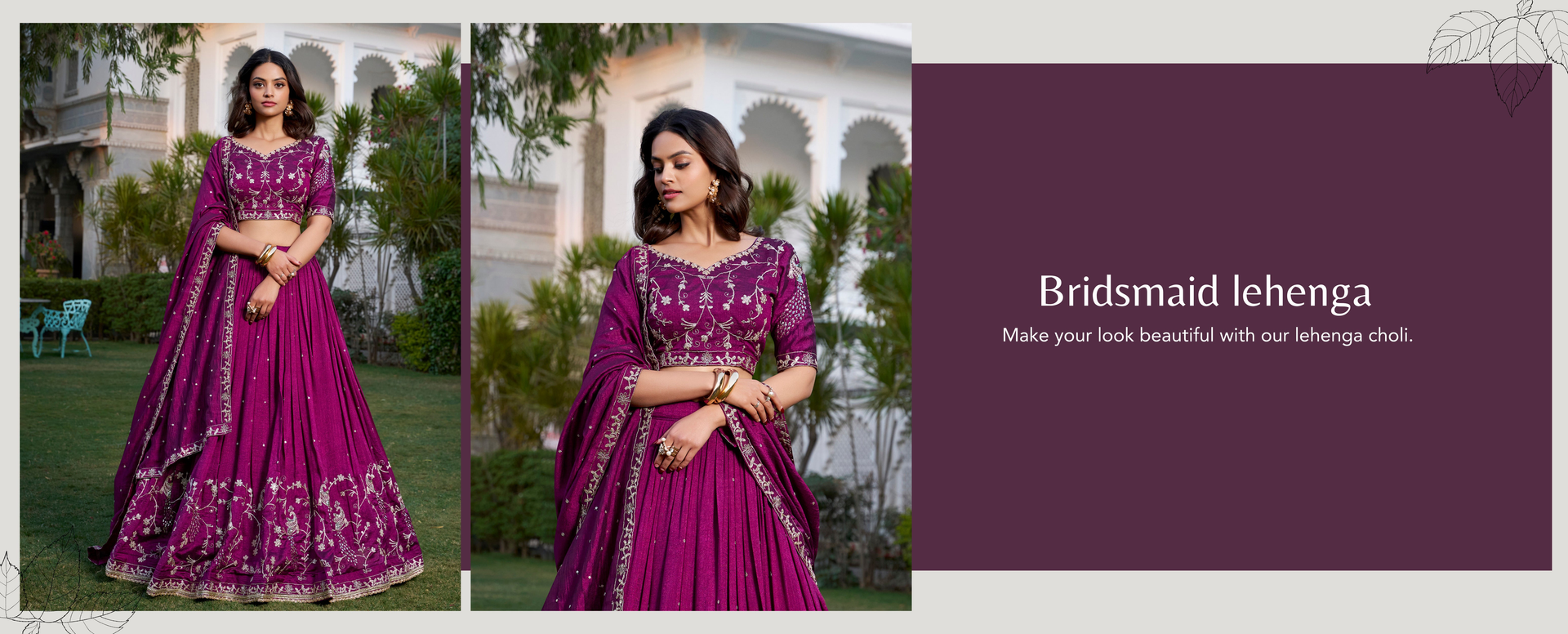 Step into elegance with this exquisite maroon color lehenga choli set, designed in chanderi fabric and adorned plain with zari weaving work border. This lehenga comes with a similar plain...