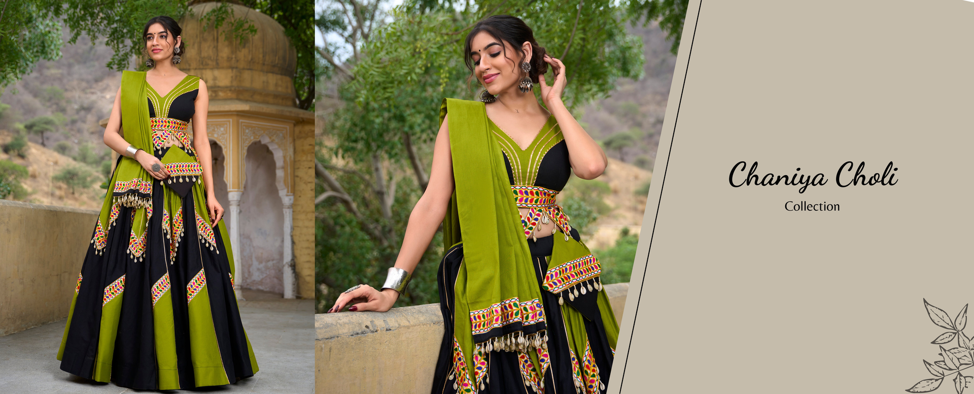 Step into elegance with this exquisite brown color lehenga choli set, designed in chanderi fabric and adorned plain with zari weaving work border. This lehenga comes with a similar plain...
