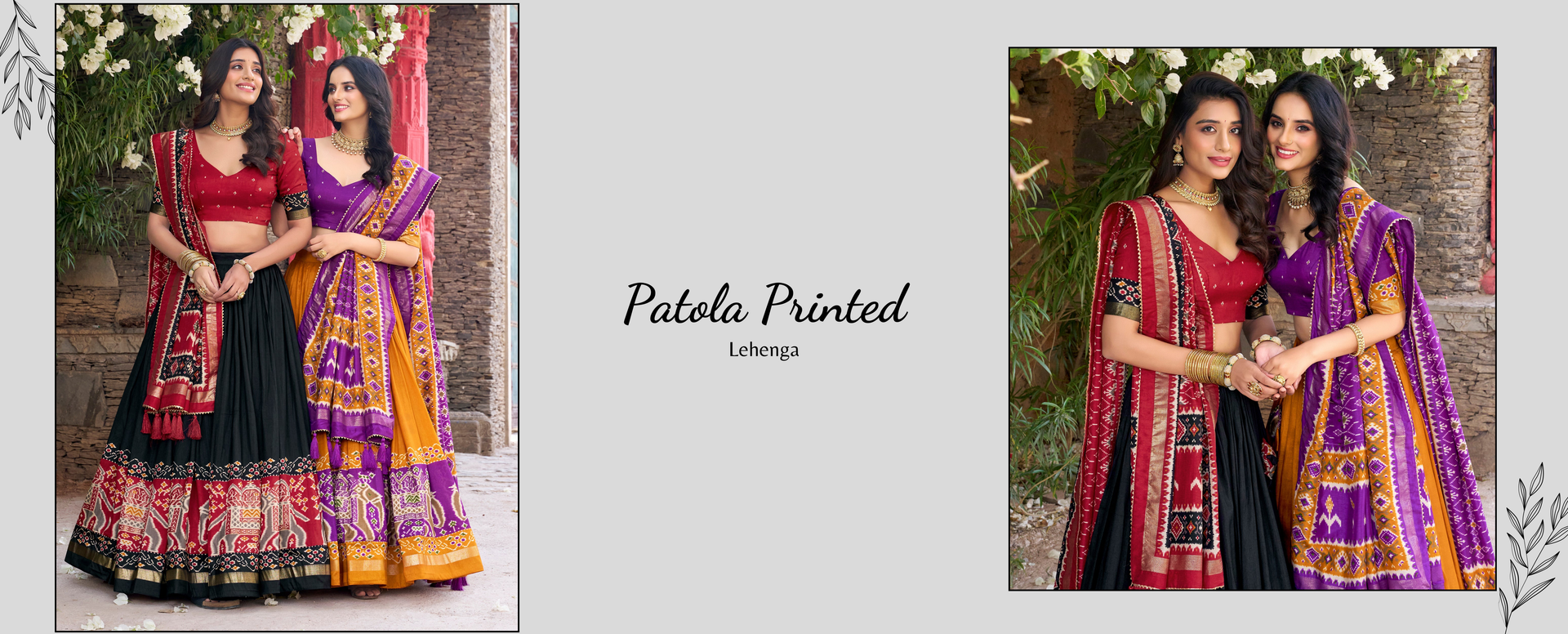Black Color Patola Printed Tussar Silk Lehenga Choli