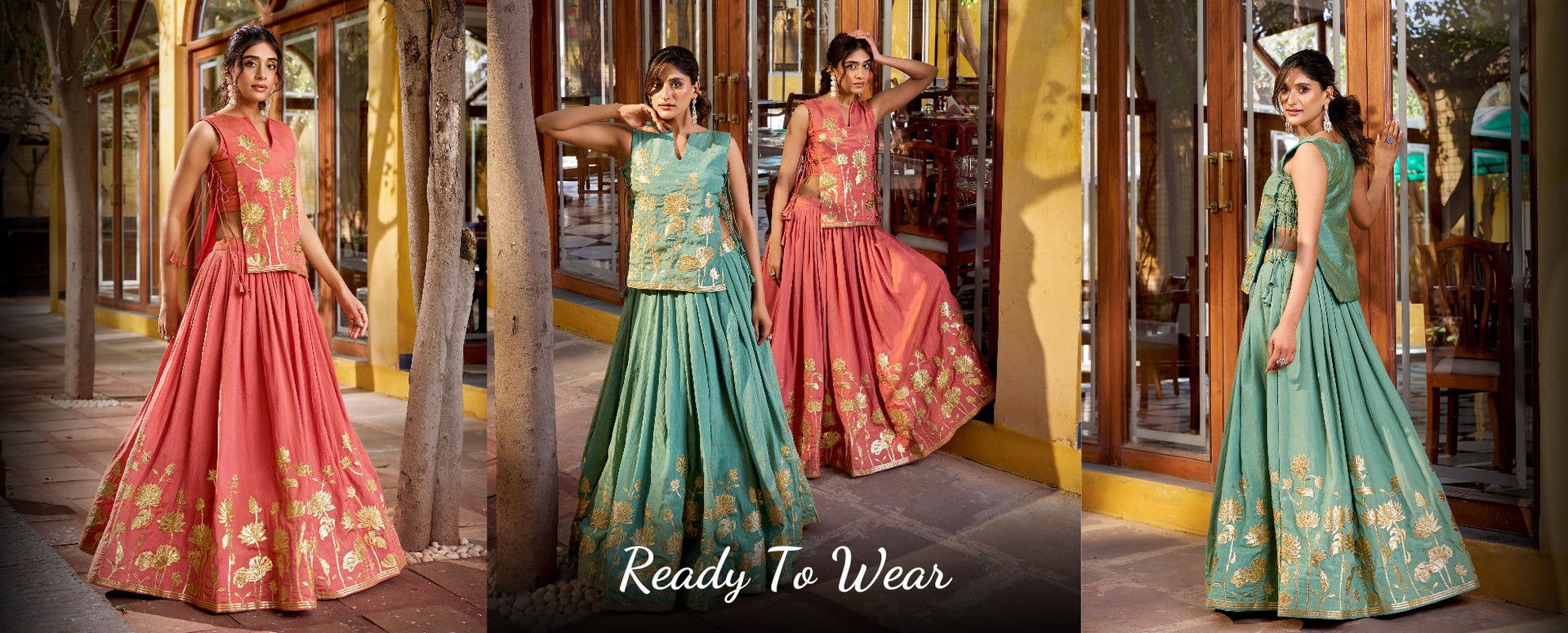 Multi Color Gota Patti Lace Border Rayon Co-ord Set Chaniya Choli