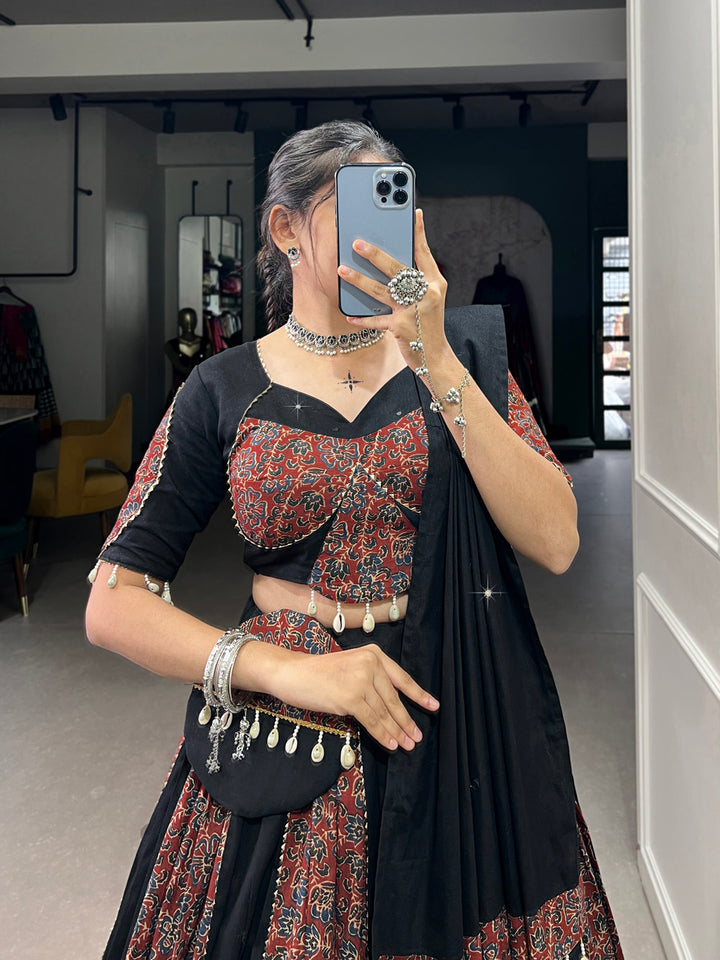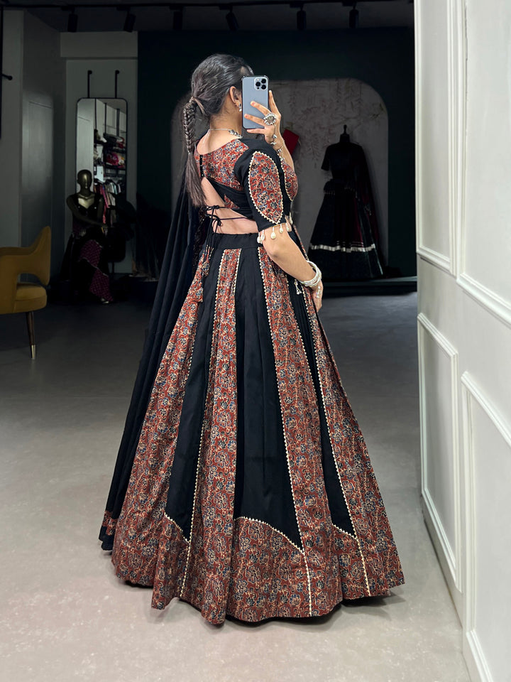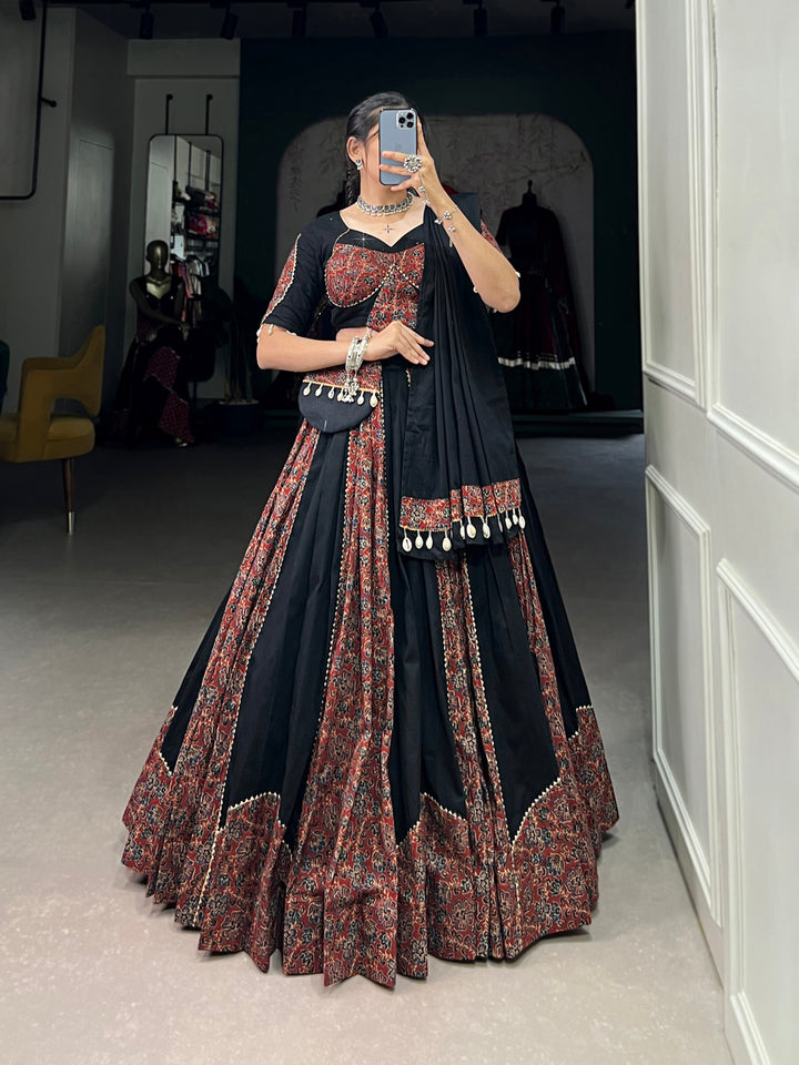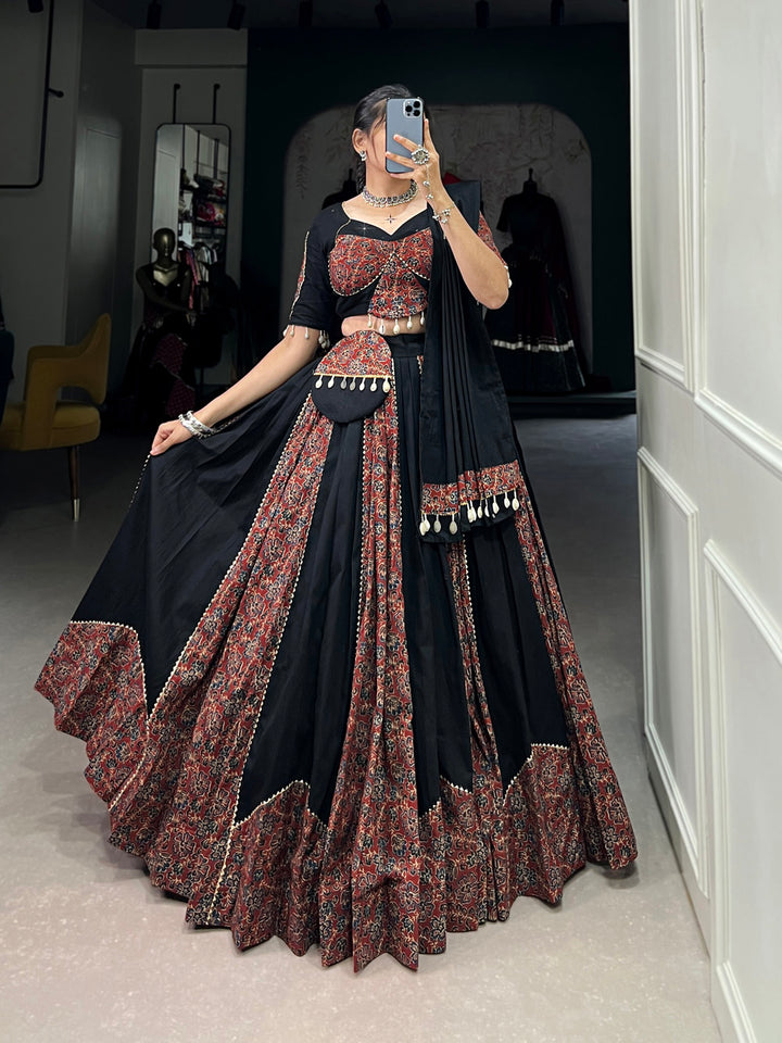 Black Color Plain With Printed And Gota Patti Cotton Chaniya Choli