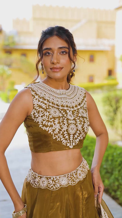 Bronze Color Embroidery Work Chaniya Choli