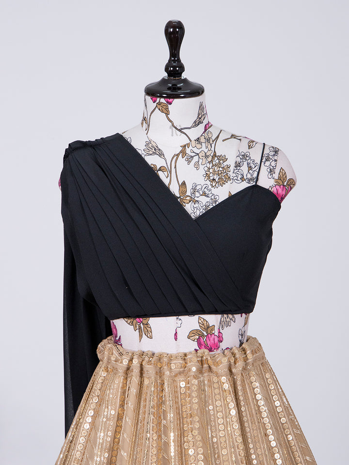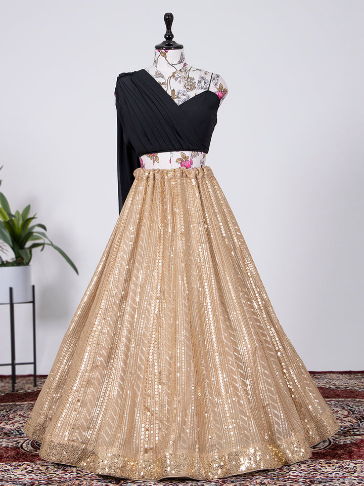 - Trendy black color plain navaratri festival wear this cream color lehenga made of georgette material beautify with sequins and thread embroidery work.