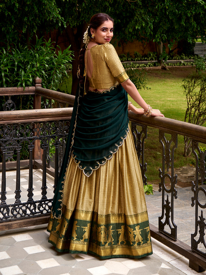 Cream Color Zari Weaving Work Poly Cotton Lehenga Choli