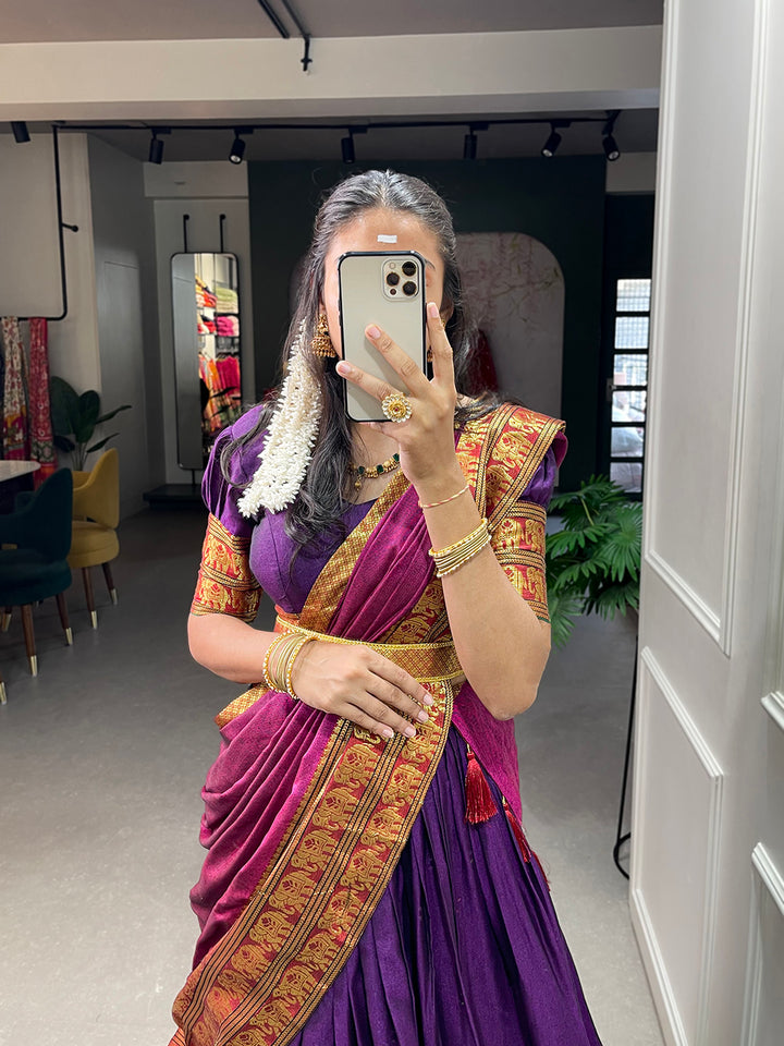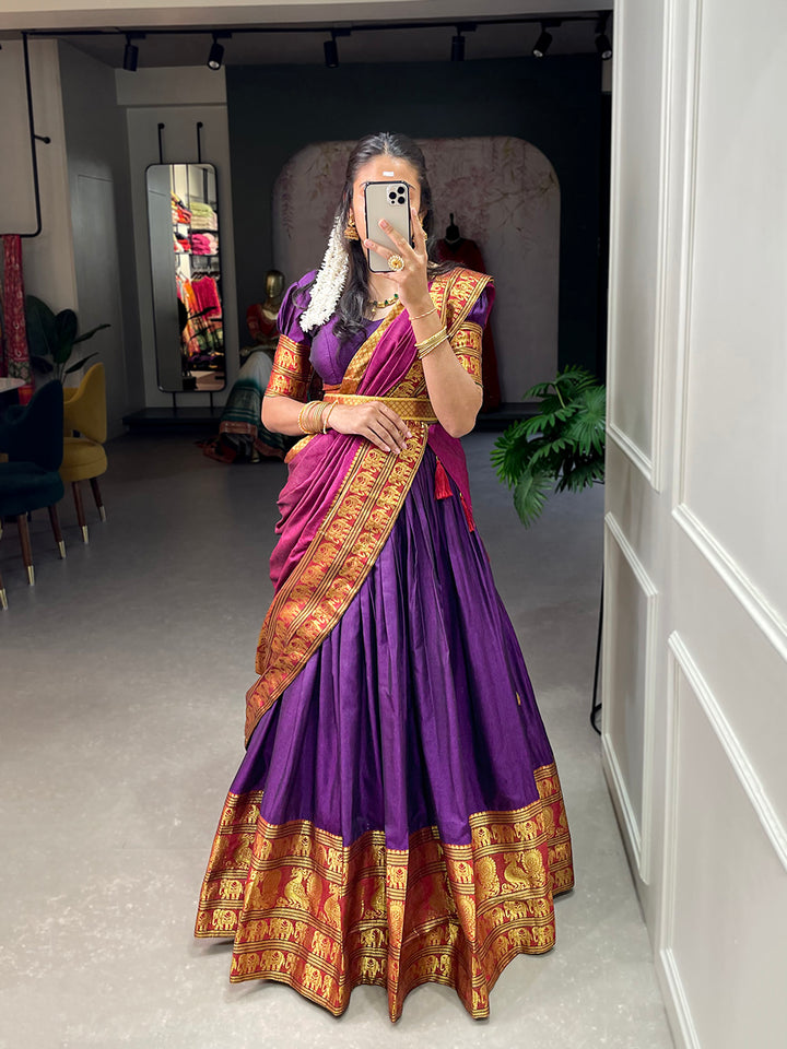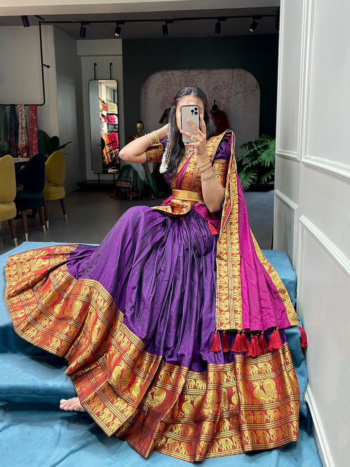 Purple Color Zari Weaving Work Narayan Pet (Cotton) Haydrabadi Lehenga Choli