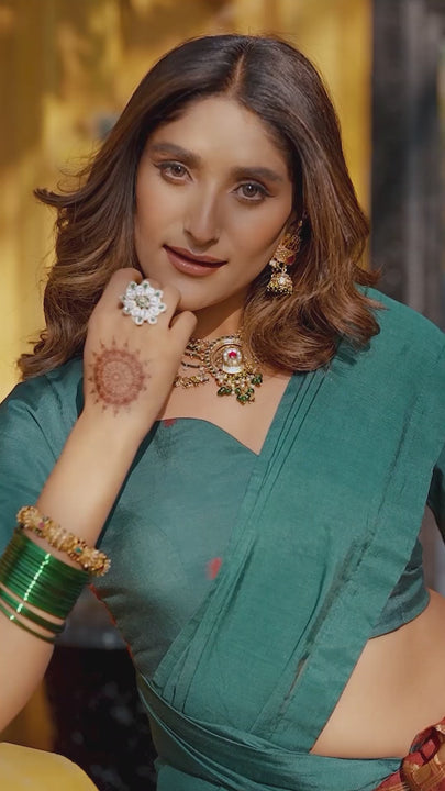 Teal Color Zari Weaving Work Chanderi Lehenga Choli